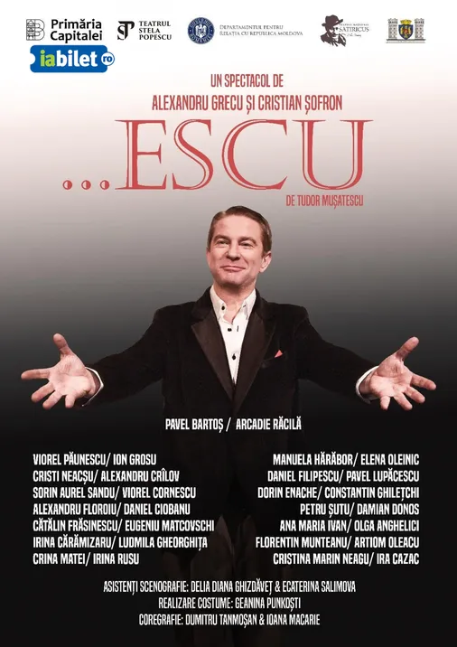 Spectacolul „…Escu” este pus în scenă de echipele artistice reunite ale Teatrului „Stela Popescu” și Teatrului Național „Satiricus Ion Luca Caragiale”, într-o colaborare unică în peisajul teatral autohton, cu siguranţă de bun augur pentru viitorul relaţiilor culturale dintre cele două capitale – București și Chișinău.