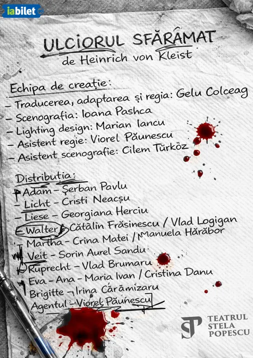 Spectacolul “Ulciorul sfărâmat” este o producție a Teatrului “Stela Popescu” din București găzduită de Teatrul de Comedie (Sala Radu Beligan)